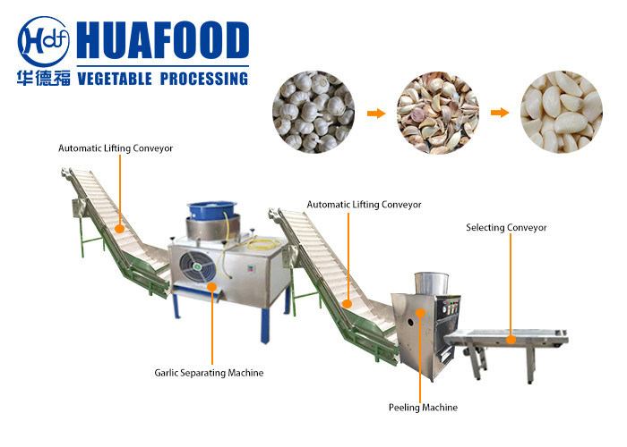 يتكون خط تقشير الثوم من مصعد ، وآلة فصل الثوم ، وآلة تقشير الثوم ، واختيار ناقل.يمكنك أيضًا تجهيز مع آلة فرز الألوان ، الغسالة ، آلة التجفيف ، آلة صنع معجون الثوم إلخ. السعة 1000 كجم - 2000 كجم في الساعة.آلة تقشير الثوم من نوع السلسلة أوتوماتيكية بالكامل.إنه سهل التشغيل ويمكنك إضافة آلات أخرى معه.